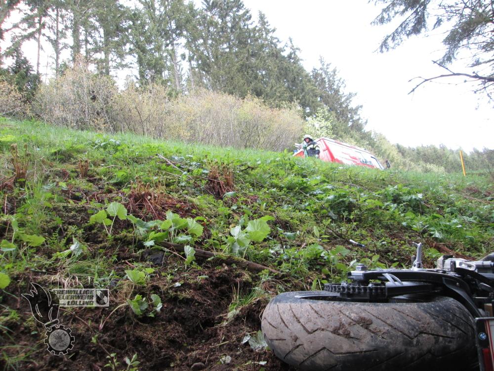 Einsatzmeldung LAWZ: Motoradfahrer verunfallt und ca 20 Meter über einen steilen Abhang gestürzt