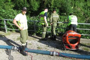 Pumparbeiten zum Füllen eines Schwimmbeckens. Die zu überwindende Länge betrug ca. 200m. Insgesamt wurden etwa 40. 000 Liter gepumpt.