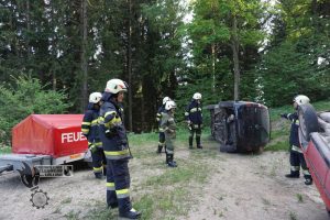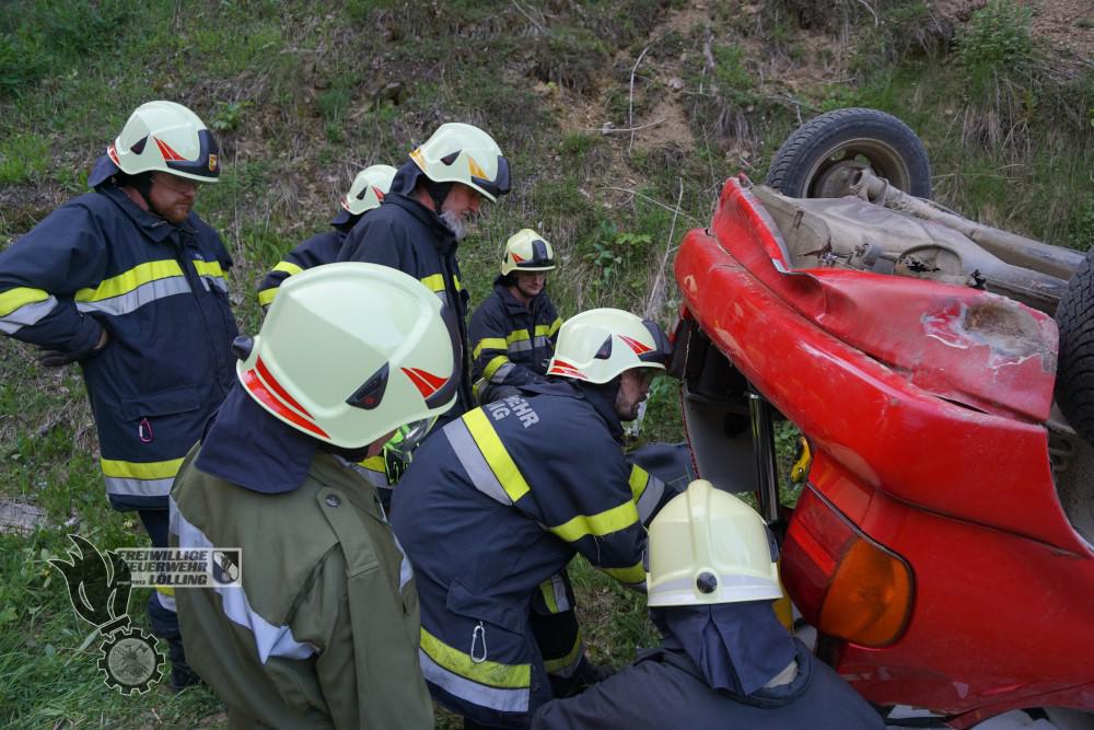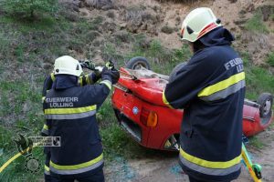 Nach der Erstversorgung durch unseren Feuerwehrarzt Dr. Obmann konnten die 2 verletzten Personen mittels der Korbschleiftrage über eine Leiter geborgen werden und der Rettung zur weiteren Versorgung übergeben werden. Der PKW wurde durch ein Abschleppunternehmen geborgen.