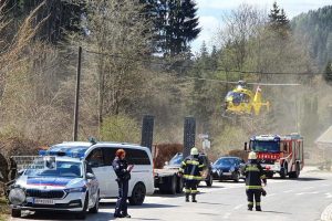 Eine Person kam bei Arbeiten im Wald zu Sturz und verletzte sich dabei unbestimmten Grades, wodurch sie nicht mehr selbst zur Straße gehen konnte. Nach der Erstversorgung durch den Notarzt wurde sie mit dem Rettungshubschrauber ins Krankenhaus transportiert